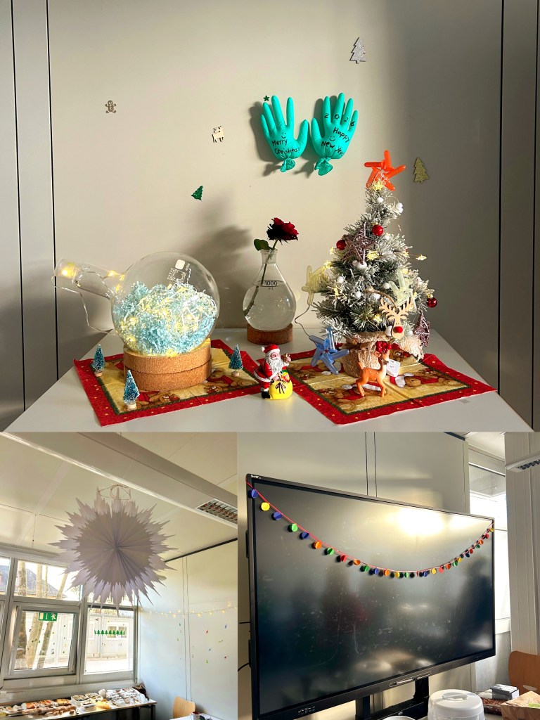 To wrap up the year, the Kühnel Lab came together for a Christmas potluck dinner. The group did an amazing job decorating our lovely grey seminar room with a colourful mix of of chemistry and Xmas themes. The weather was a little too sunny for Xmas, but the decorations and the food more than made up for it.